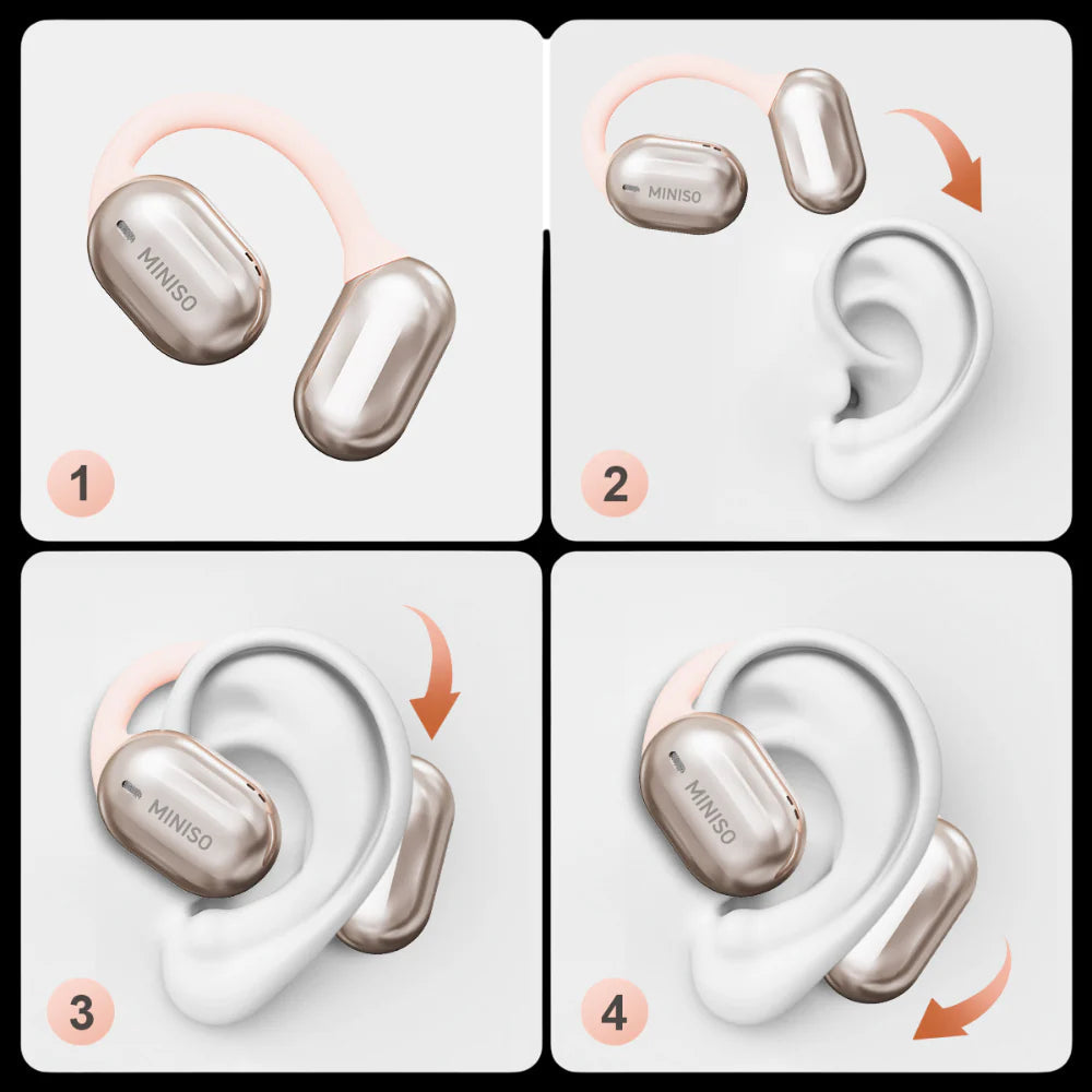 Le design open-ear élimine la pression dans le conduit auditif, écoutez vos médias préférés sans douleur et sans gêne.